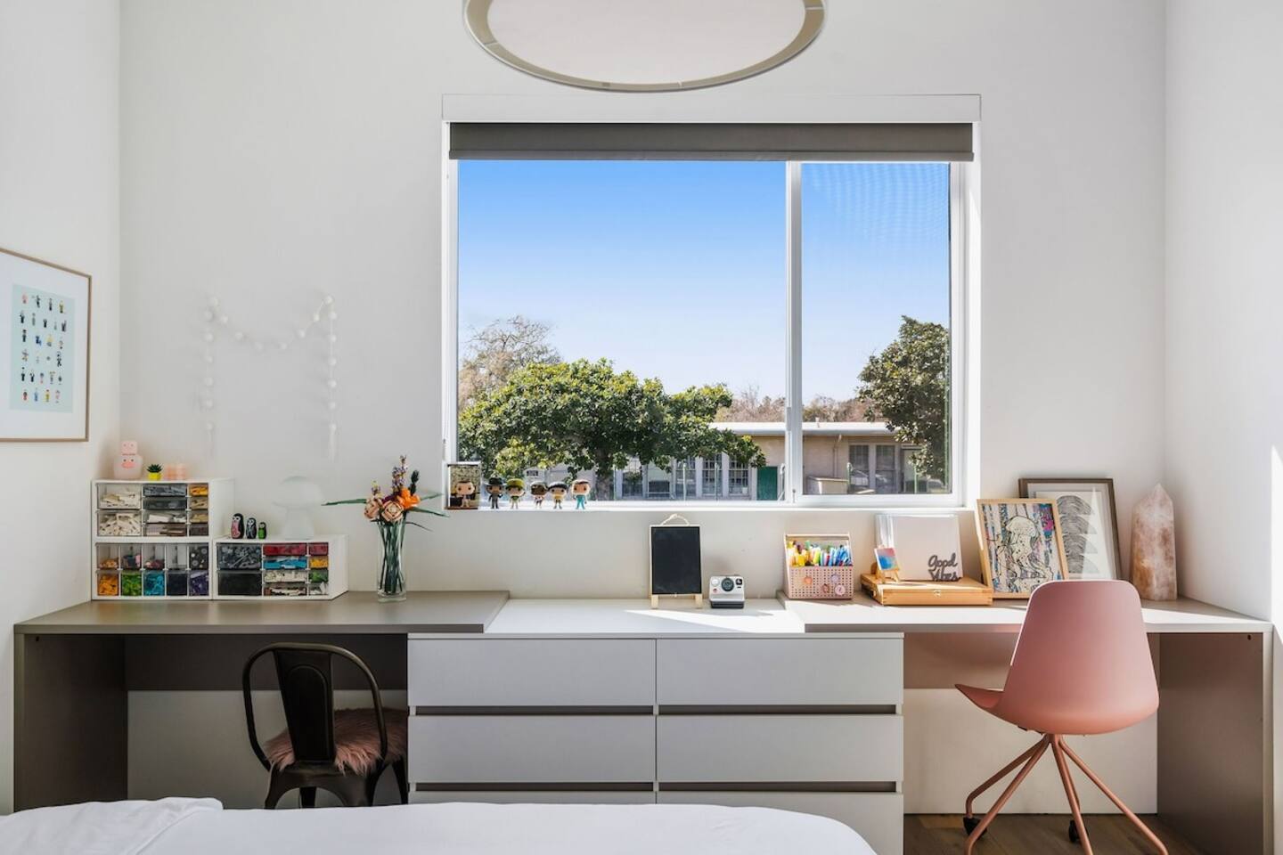 Escape to a contemporary 2,850-sq-ft stunner near Abbot Kinney, Santa Monica, and Culver City. Soaring 28-ft ceilings and walls of glass blur indoors and out. Gather in the chef’s kitchen, then drift to a lush backyard oasis with a heated pool (swim jets), built-in BBQ, and fire-pit lounge. 4 beds / 3 baths, stylish finishes, and sun all day—California living at its best.