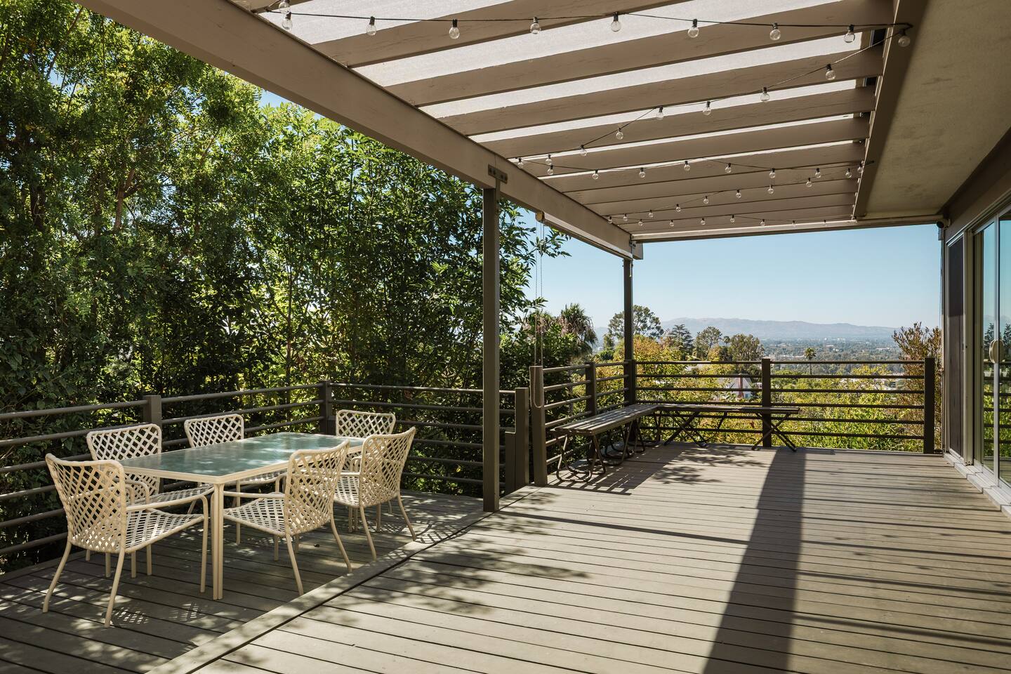 Welcome to Sunset Vista, a luxury hilltop retreat in Studio City. This architecturally significant 3 bedroom 2 bathroom mid-century home features panoramic views, floor-to-ceiling glass, and an open-concept layout ideal for entertaining or relaxing. Highlights include a chef’s kitchen with high-end appliances, stylish lounge and dining areas, a peaceful patio with outdoor seating, and covered parking. Serene by day, magical at sunset – a true LA escape.
