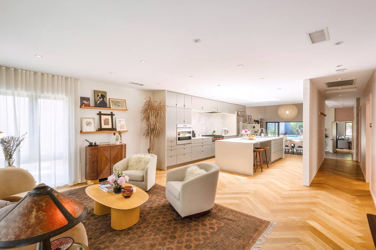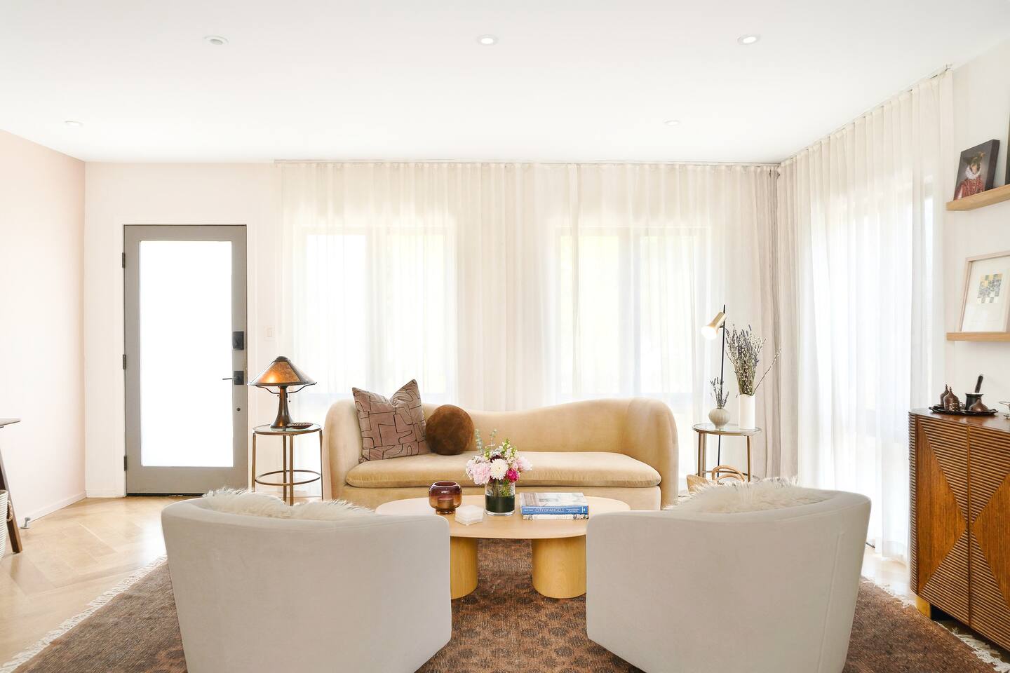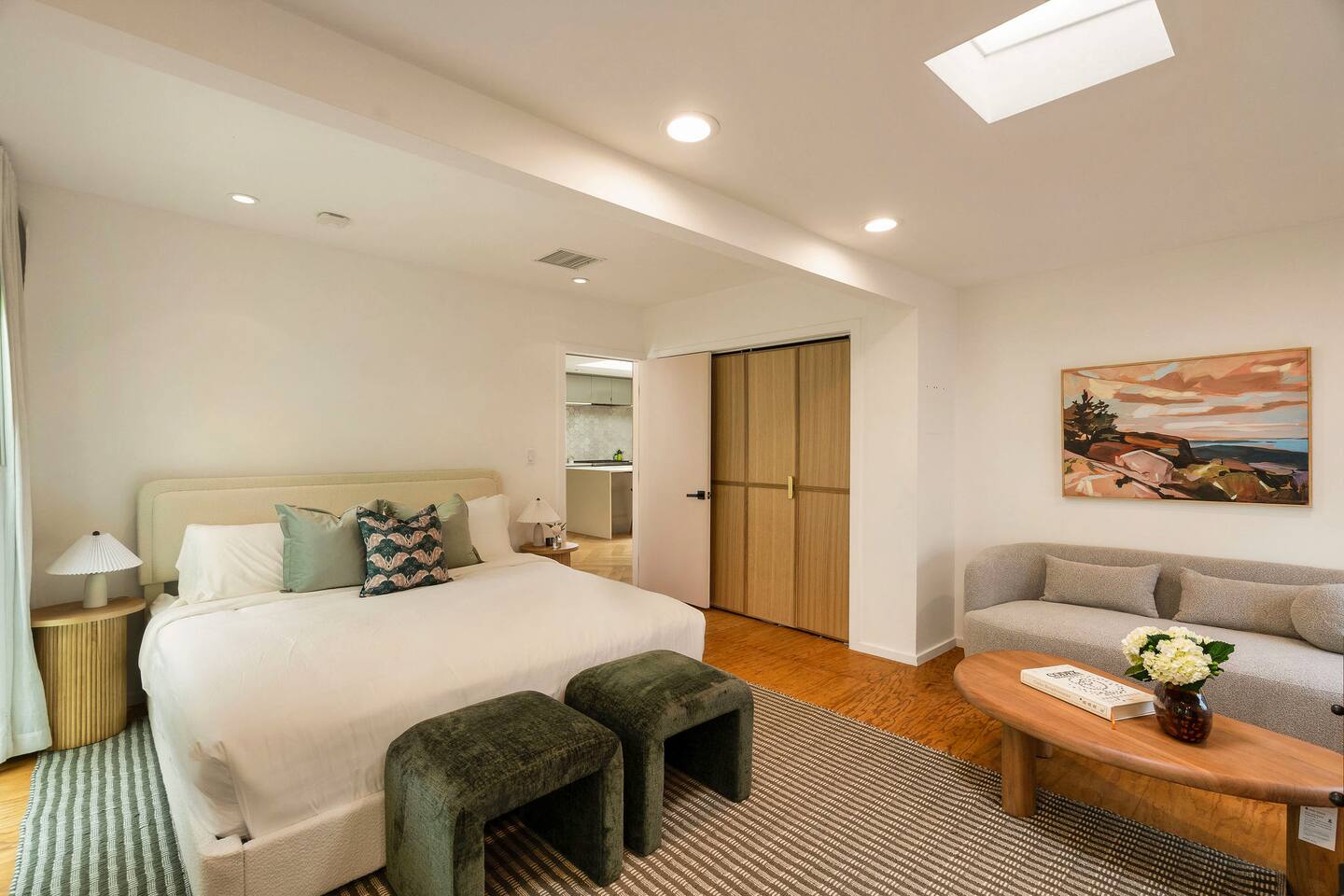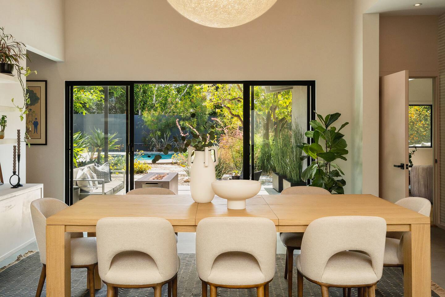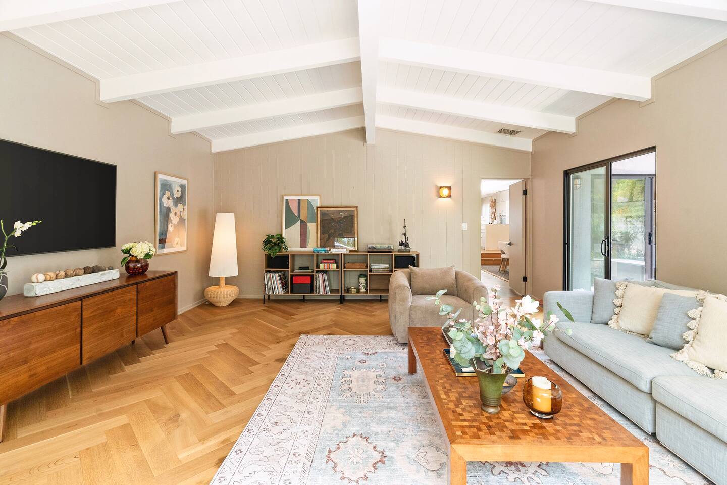 Welcome to the Sunshine Oasis – a serene and sun-drenched 4-bedroom 2-bathroom (+ private office) retreat tucked away on a quiet street minutes from Venice, Santa Monica and Culver City, in the heart of the Westside. This home blends laid-back mid-century luxury with lush, magazine-worthy grounds. The open-concept living spaces flow effortlessly into a private backyard oasis featuring a sparkling pool, jacuzzi, two fire pits, outdoor grill and dining area, plus magical nooks for relaxation.