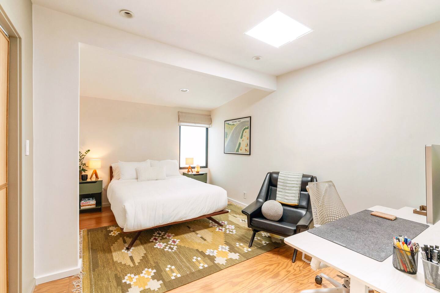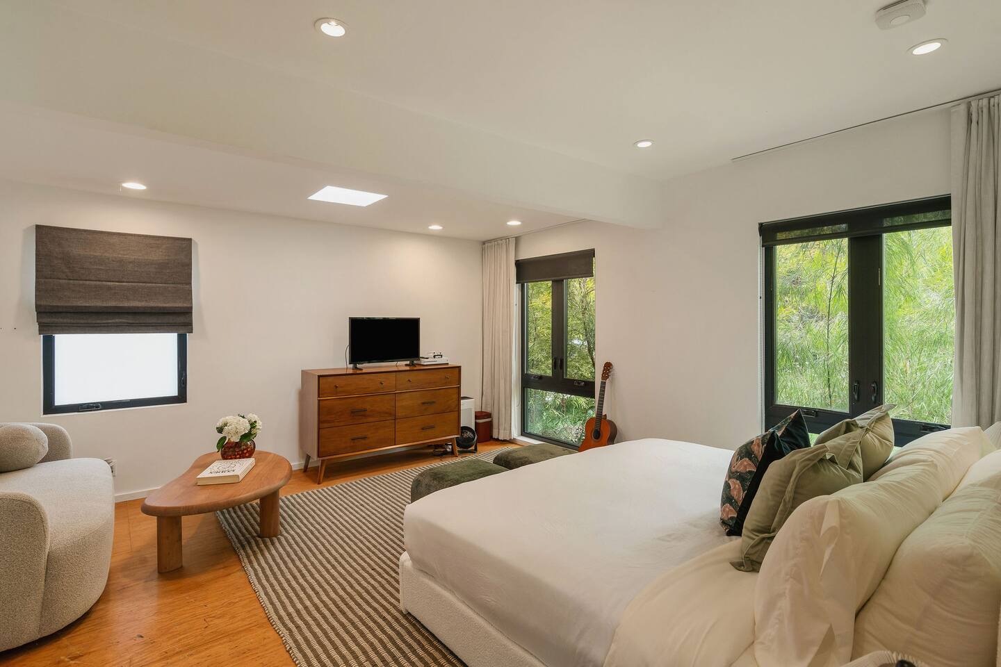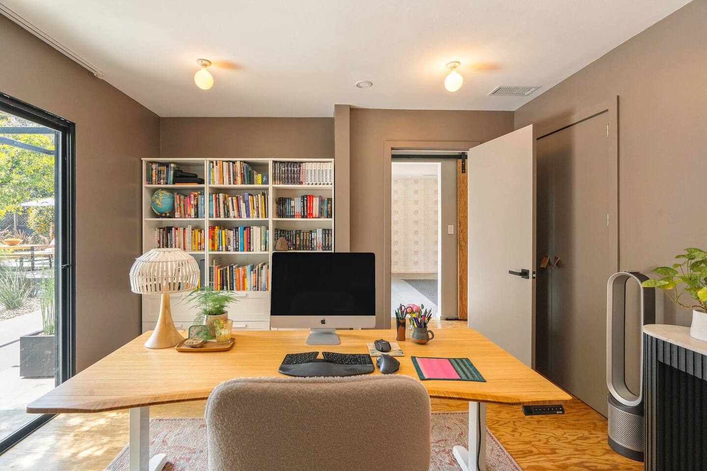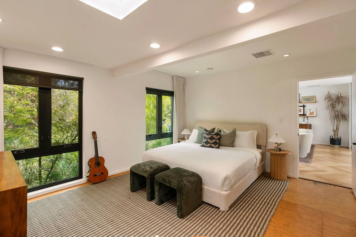 Welcome to the Sunshine Oasis – a serene and sun-drenched 4-bedroom 2-bathroom (+ private office) retreat tucked away on a quiet street minutes from Venice, Santa Monica and Culver City, in the heart of the Westside. This home blends laid-back mid-century luxury with lush, magazine-worthy grounds. The open-concept living spaces flow effortlessly into a private backyard oasis featuring a sparkling pool, jacuzzi, two fire pits, outdoor grill and dining area, plus magical nooks for relaxation.