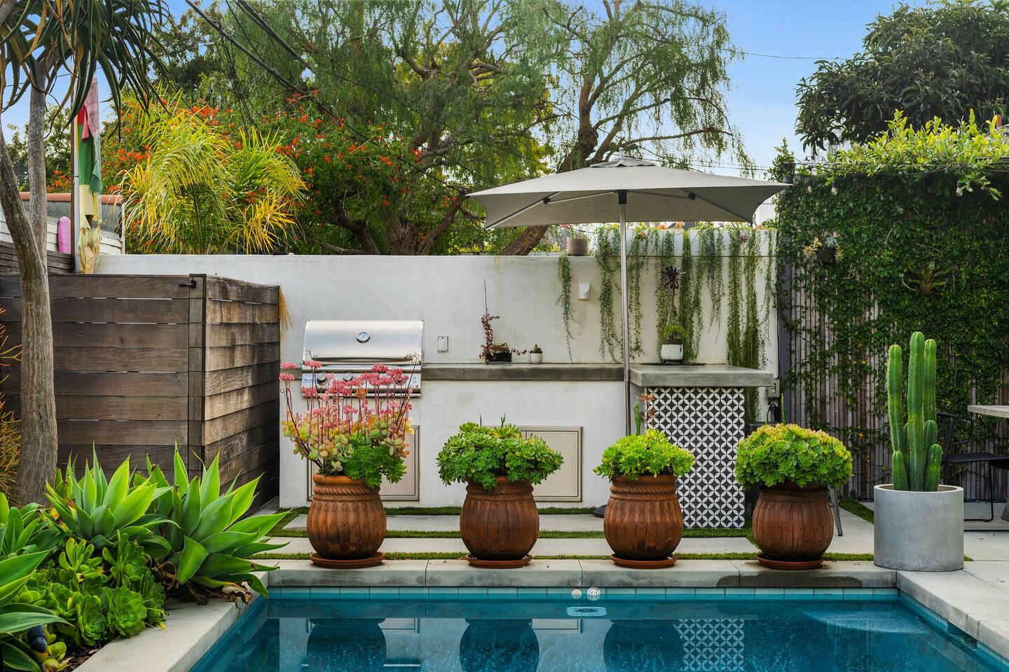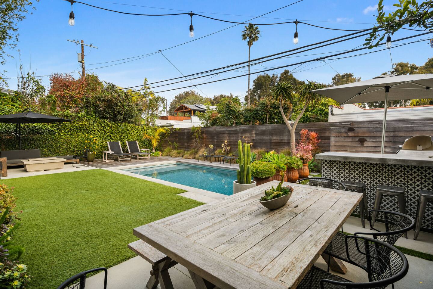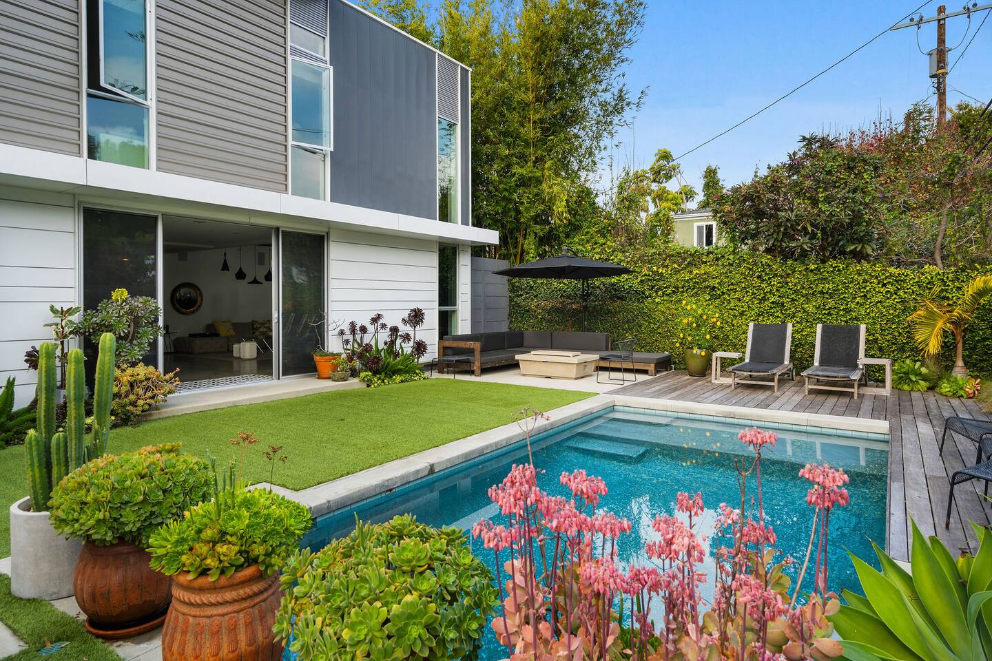 Escape to a contemporary 2,850-sq-ft stunner near Abbot Kinney, Santa Monica, and Culver City. Soaring 28-ft ceilings and walls of glass blur indoors and out. Gather in the chef’s kitchen, then drift to a lush backyard oasis with a heated pool (swim jets), built-in BBQ, and fire-pit lounge. 4 beds / 3 baths, stylish finishes, and sun all day—California living at its best.