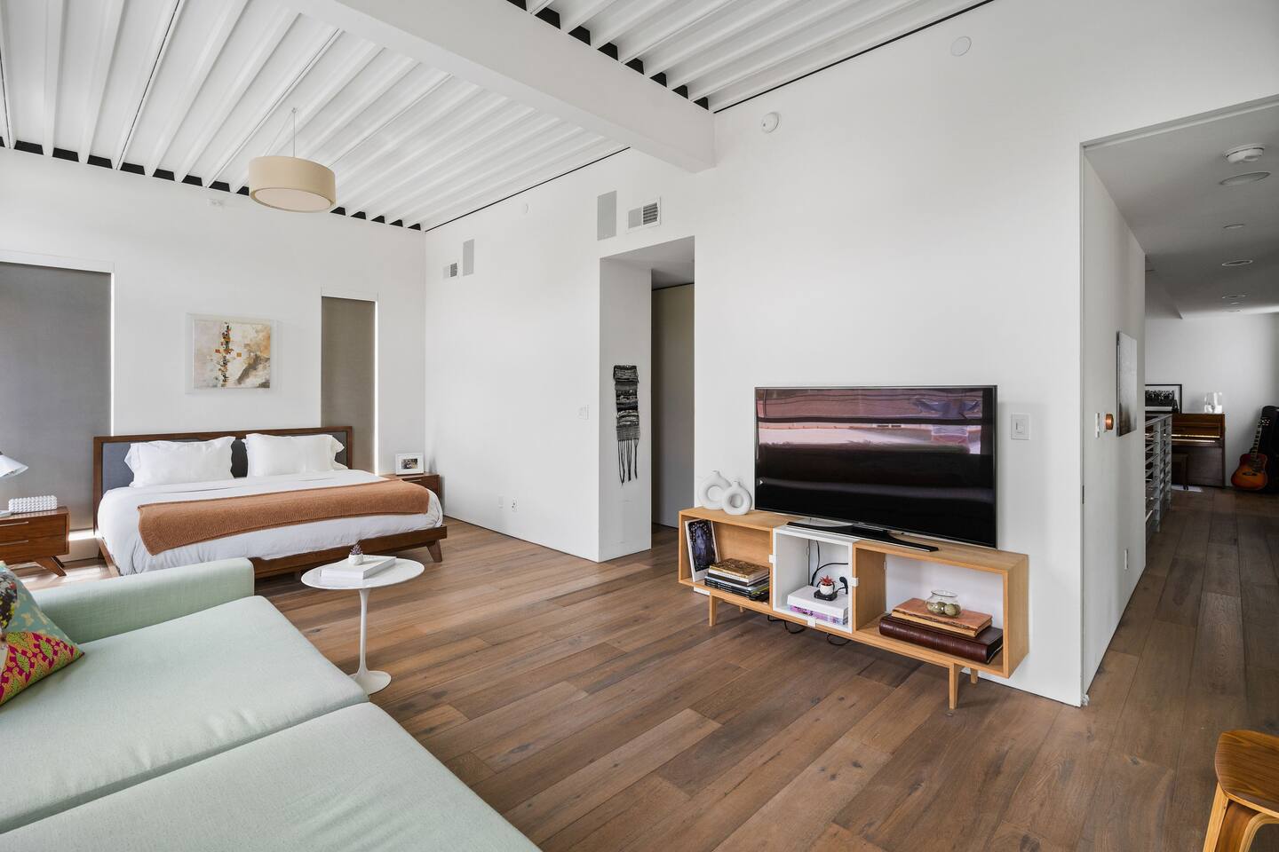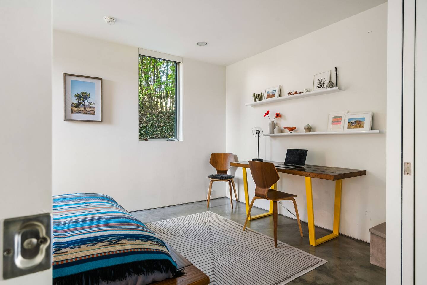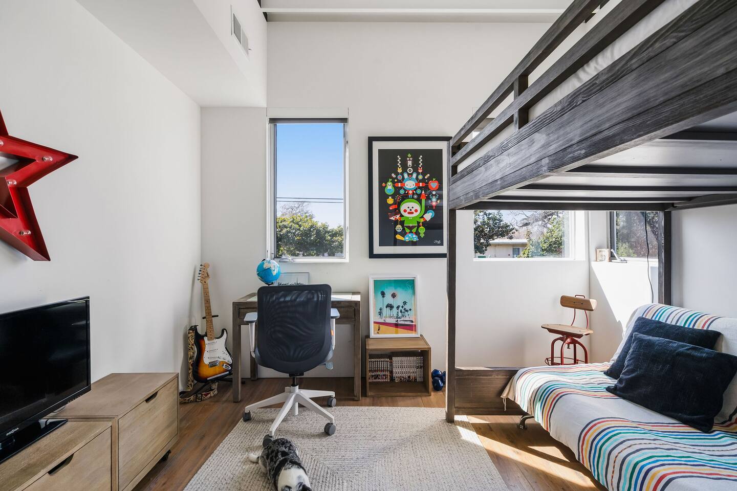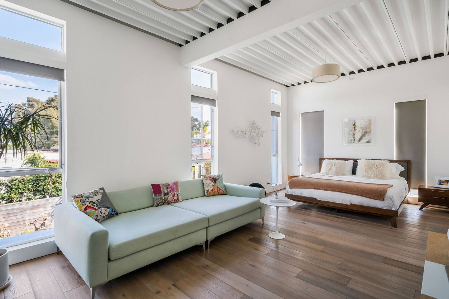 Step into luxury and comfort as you enter this contemporary Mar Vista marvel, where every last detail has been meticulously crafted to provide an unforgettable California getaway. Indulge in relaxation in the spacious and inviting living areas with soaring 28ft ceilings bathed in natural light. The indoor gas fireplace sets a cozy ambiance for evenings spent lounging with loved ones, while the outdoor gas fire pit invites you to gather under the stars for memorable conversations. Entertain with ease in the gourmet chef's kitchen, equipped with high-end appliances as well as a Nespresso machine for your morning pick-me-up. Whether you're preparing a feast for your loved ones or enjoying a quiet breakfast at the dining table that seats 8, this kitchen is sure to inspire culinary creativity. Unwind in the extra-large primary bedroom, featuring a deep-set couch for moments of solitude and relaxation. With two smart TVs located throughout the home, you'll never miss your favorite shows or movies. For guests or those seeking a quiet workspace, the guest bedroom on the main floor doubles as an office and includes a convenient 3-piece bathroom with a shower, as well as ample closet space. As well, there are two additional bedrooms to comfortably accommodate larger families and party sizes: one room with a queen-size bed accommodating two guests, and another room featuring a lofted double-size bunk bed and a pull-out double-size futon, ideal for kids or extra guests. And for the musically inclined, an upright piano awaits your talents. Outside, discover your own private oasis in the sun-drenched backyard. Take a refreshing dip in the heated swimming pool, complete with a swimmer's jet and a lounging platform for ultimate relaxation. Dine al fresco at the outdoor dining table, which comfortably seats 8-10 guests, or gather around the fire pit for cozy evenings under the stars. With Nest-controlled entry and AC/heating, as well as an optionally heated pool, your comfort is always at your fingertips. Families with young children will appreciate the thoughtful design elements, including a deeper shower floor in the kids' bathroom for easy bathing. Nestled in the vibrant community of Mar Vista, this home offers easy access to the best that the Westside of Los Angeles has to offer. Moreover, Mar Vista's prime location places it within minutes of iconic Westside hot spots such as Venice Beach / Abbot Kinney, Santa Monica, Culver City, and more – all detailed further in the "Where You'll Be" section of this page. Embrace the essence of California living in this stunning architectural home, where luxury meets tranquility and every moment is an opportunity for unforgettable memories.