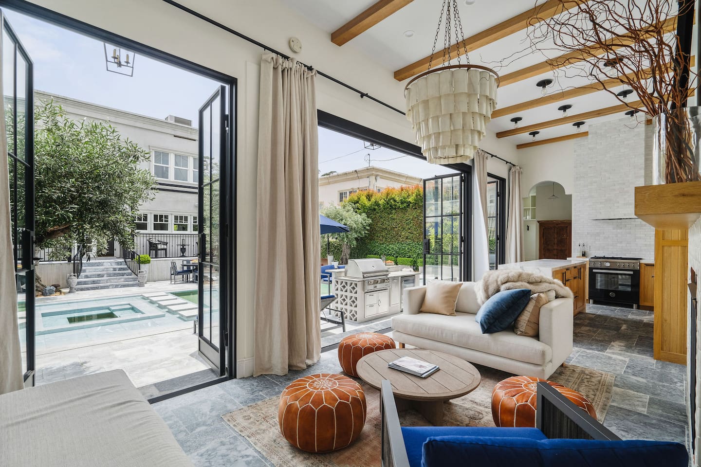 Escape to Villa Lafayette, an exquisite masterpiece in the prestigious centrally located Lafayette Square, Los Angeles. This enchanting space straight out of a magazine blends luxury and comfort for unforgettable memories. Experience the California dream at this palatial estate featuring a stunning front garden, immaculate interiors, and a breathtaking backyard oasis with a pristine pool, jacuzzi, pool house, outdoor bar, dining, and beautiful spaces that become magic at dusk.